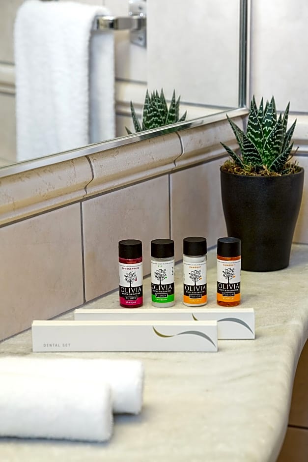 La oferta gastronómica en el propio establecimiento mantiene las cosas sencillas y sabrosas con Sweet Basil, que sirve platos griegos e internacionales, e Icarus con opciones internacionales, todo ello complementado por un bar para bebidas nocturnas. El aparcamiento está disponible en las instalaciones con cargo adicional, y se ofrecen instalaciones para reuniones o banquetes con tarifas adicionales para eventos o encuentros.