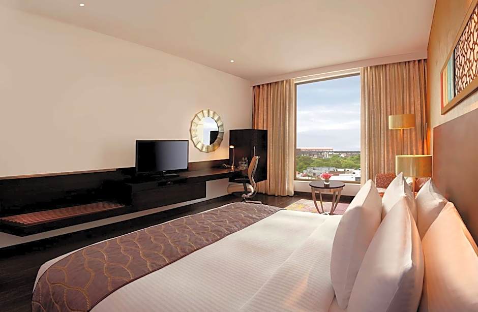 Tu aventura en Jaipur comienza aquí, donde cada detalle está meticulosamente diseñado para tu disfrute. Desde amplias habitaciones para no fumadores equipadas con aire acondicionado y vistas impresionantes a la montaña, hasta ventajas adicionales como servicios de cuidado infantil y un gimnasio, el Hilton Jaipur tiene todo para satisfacer tus deseos. Ven y descubre tu hogar lejos de casa en esta encantadora ciudad.