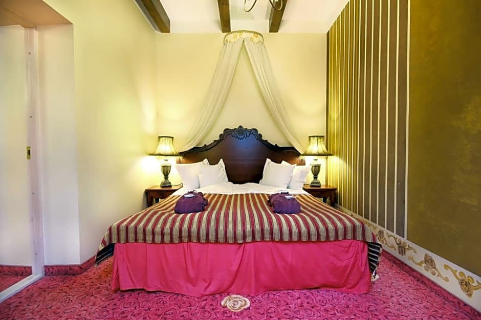At the Grand Rose SPA Hotel, guests can choose from suites with balcony and spa access or with a fireplace and spa access, both accommodating 2 adults and 1 child. The Deluxe Double Room offers a Queen-size bed and is suitable for 2 adults, while the Double or Twin Room with spa access can accommodate 2 adults and 1 child. Smoking is not allowed in any of the rooms, and bed sizes vary from Queen to King to Twin.