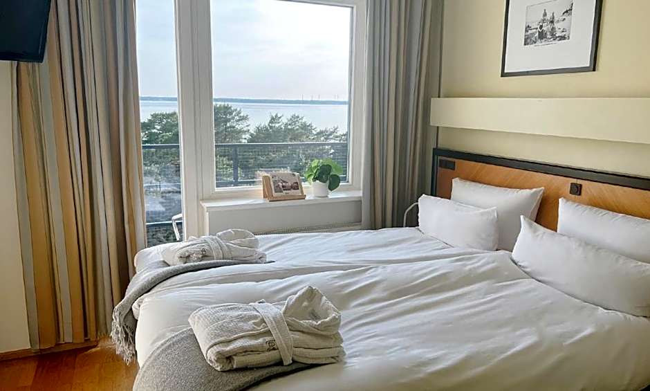 This room comes with a double bed and a pull-out sofa bed. Located on different floors of the hotel, some with a view of the sea and others with a view of the pine forest. Most rooms have a balcony. A Nespresso® coffee machine, kettle and mini fridge are provided.