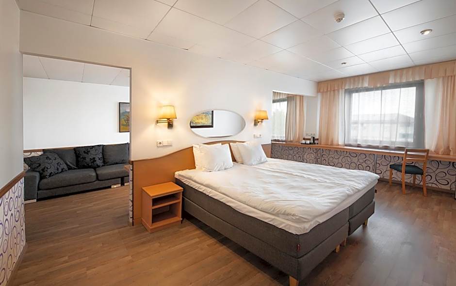 Spacious suite with a living room, a private sauna and bathroom comes with toiletries, slippers and bathrobes.