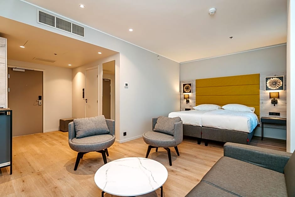 The spacious air-conditioned family rooms have high-quality continental beds and a sofa bed for up to two children. All rooms include a TV, a mini-bar, a safety deposit box and blackout curtains. All rooms have parquet floors. Bathroom includes a hairdryer. Guests can enjoy free WIFI and a tea/hot drink set. The room rate includes the possibility to use a separate workspace. The extra sofa bed is made for 2 people.