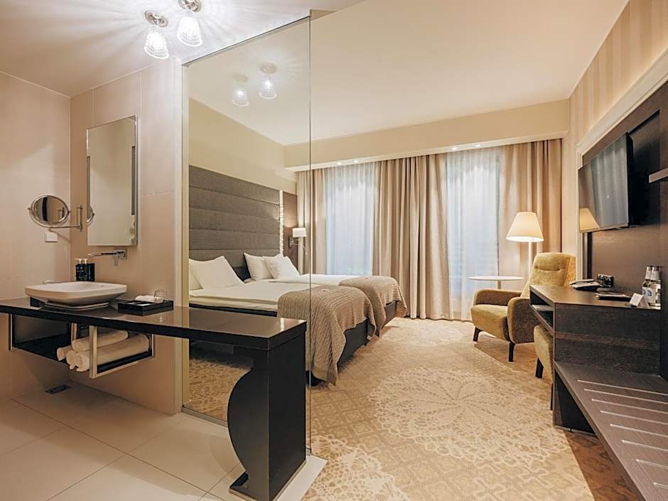 The sauna is a top feature of this suite. This spacious suite comes with 1 living room, 1 separate bedroom and 1 bathroom with a bath and free toiletries. The air-conditioned suite features a flat-screen TV with satellite channels, a mini-bar, a coffee machine, a seating area as well as city views. The unit has 2 beds.