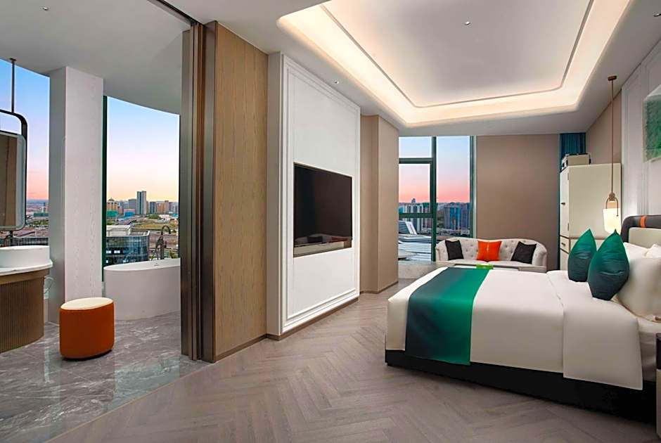 The suite has 1 bedroom and 2 bathrooms with a shower and free toiletries. The suite features a flat-screen TV with cable channels, soundproof walls, a mini-bar, a tea and coffee maker as well as city views. The unit has 1 bed.