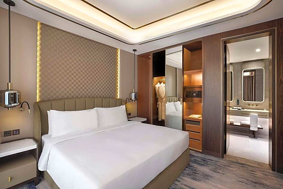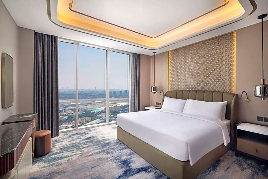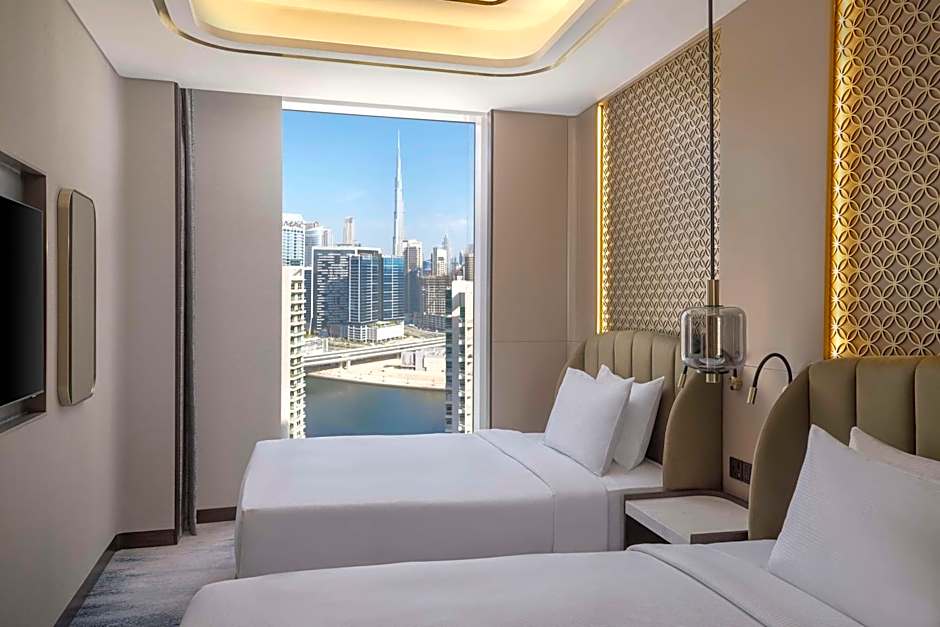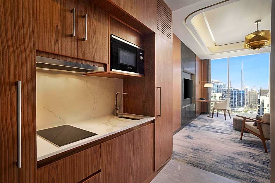 Tervetuloa Embassy Suites By Hilton Dubai Business Bay, ylelliseen kotiisi poissa kotoa loistokkaassa Dubaissa! Se sijaitsee Marasi Drivella Business Bayssä, ja olet vain 7,4 mailia kaupungin sykähdyttävästä keskustasta. Valmistaudu unohtumattomaan elämykseen, jossa mukavuus kohtaa tyylin — ja kaikki tämä alkaen vain $150 per yö.