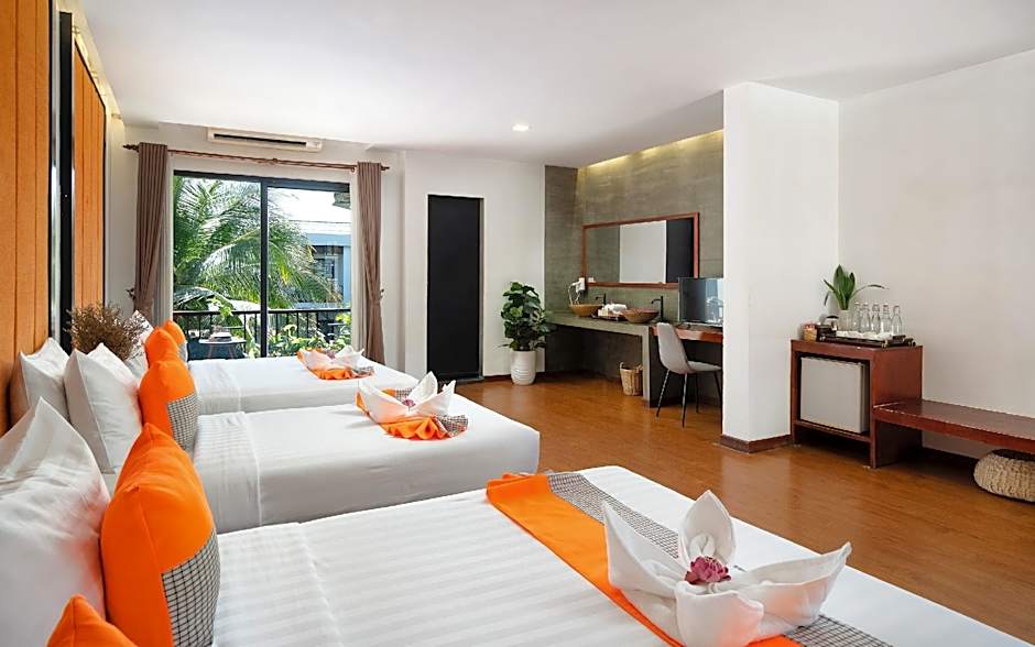 Tietenkään tämä perheiden keskus ei unohda ryhmiä! Perheille sopivat majoitusvaihtoehdot, kuten Super Family Deluxe with Pool View ja tilavat loma-asunnot, varmistavat, että olette valmiita unohtumattomaan yhteiseen lomaan. Tilavat ja mukavat huoneet sisältävät parvekkeet, jotka ovat täydellisiä trooppisen tuulen aistimiseen, kun lapset iloisesti kirmavat altaassa alla. Rakastat täällä luoda arvokkaita muistoja — laiskoista aamupäivistä aina jännittäviin seikkailuihin Angkor Watin kiehtovaa historiaa tutkien. Central Corner d'Angkor on lippusi vauhdikkaaseen ja sydäntä lämmittävään kokemukseen — valmistaudu elämänmatkan seikkailuun!
