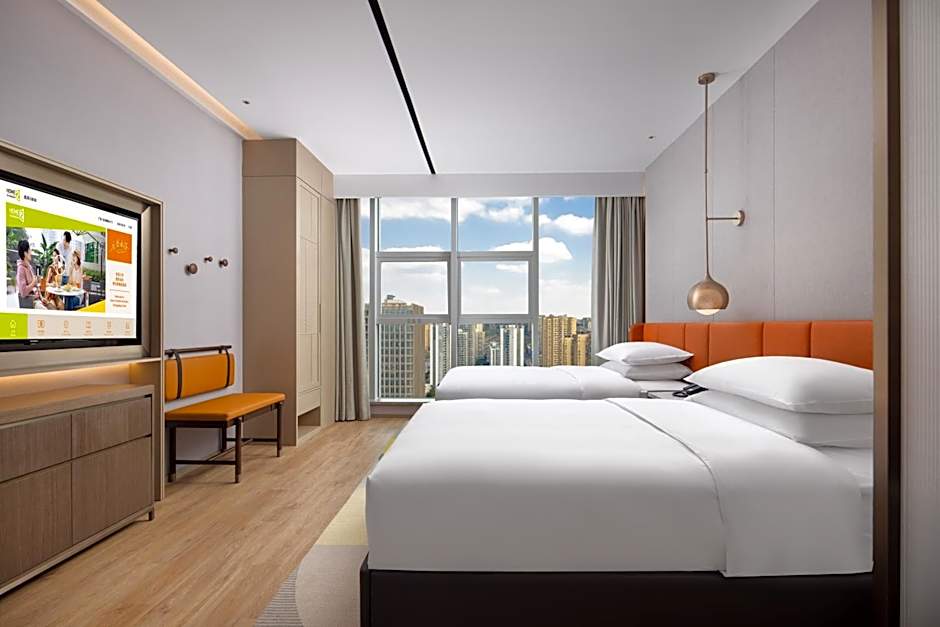 Sijaintinsa ja maksuttomien palveluidensa, kuten lentokenttäkuljetuksen ja bisneskeskuksen, ansiosta Home2 Suites by Hilton Chongqing Yubei on täydellinen valinta seuraavalle Chongqingin vierailullesi. Nauti savuttomien huoneiden, ilmaisten hygieniatuotteiden ja pyörätuolilla pääsyn mahdollistavien tilojen mukavuudesta vierailusi aikana. Koe Chongqingin parhaat puolet tästä tyylikkäästä ja vieraanvaraisesta hotellista!