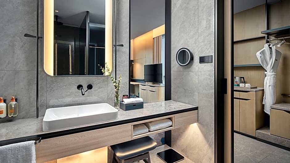 Binjiangin kaupunginosan Hangzhoun joen varrella sijaitseva tämä kimalteleva viiden tähden keidas yhdistää pelkistetyn, modernin muotoilun ja rauhoittavat vesinäkymät. Aamiainen antaa raikkaan alun päivälle, ja maksuton Wi‑Fi pitää suunnitelmat hallinnassa työn tai vapaa‑ajan aikana. Käytännöllisiä mukavuuksia on runsaasti: ilmastointi kauttaaltaan, rentouttava poreallas, keittiö joustavia aterioita varten, hissi ylempiin kerroksiin, kylpyamme ja maksuttomat kylpytuotteet — kaikki tämä kutsuvien näköalojen kehystämänä.