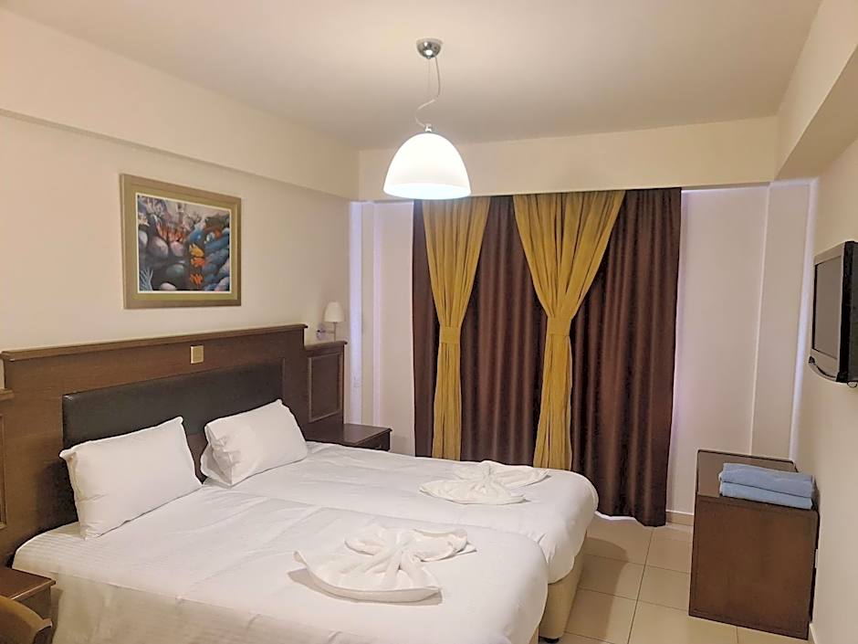 Tervetuloa kohteeseen Euronapa Hotel Apartments, viehättävään 3 tähden apart-hotelliin, joka sijaitsee kauniissa Ayia Napassa, Kyproksella. Vain 0,8 mailia päässä kaupungin keskustasta tämä hotelli tarjoaa kätevän sijainnin matkailijoille, jotka haluavat tutkia vilkasta ympäristöä. Hotellin osoite, John Kennedy 6, takaa helpon pääsyn suosituimpiin nähtävyyksiin ja hiekkarannoille, mikä tekee siitä ihanteellisen valinnan oleskelullesi Kyproksella.