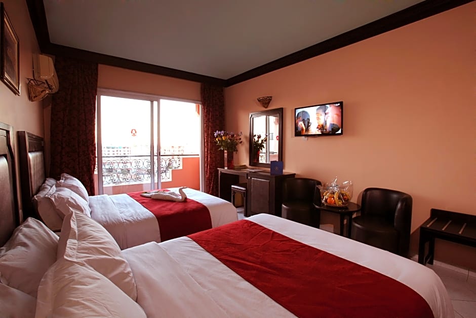 3,397 arvostelua tukee kokemusta; Marrakeshin sijainnin ansiosta Imperial Holiday Hôtel & spa on vain 0,8 mailia keskustasta, osoitteessa 30, Avenue Moulay Rachid. Huoneissa voi olla puutarhanäkymä tai maamerkkinäkymä, ja ne tarjoavat ilmaisia hygieniatuotteita sekä savuttomia vaihtoehtoja. Paikan päällä on myös matkajärjestelypiste, terassi, hissi, puutarha, parveke sekä ylemmät kerrokset saavutettavissa hissillä, lisäksi ilmainen WiFi ja ilmaiset rantavarjot aurinkoisia päiviä varten.