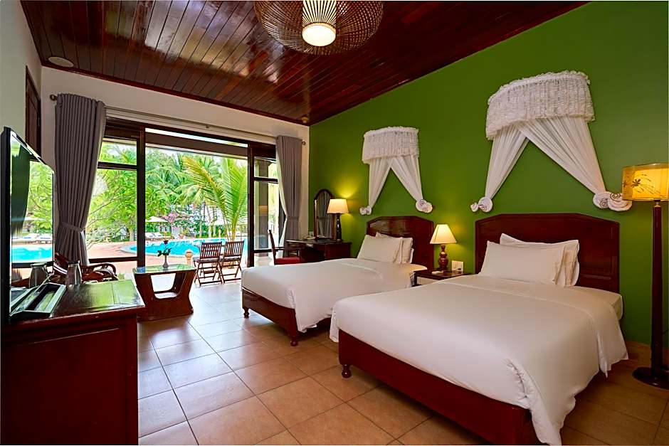 Tervetuloa Lang Co Beach Resort — paratiisinpala Phu Hoin sydämessä, Vietnamissa! Tämä viehättävä 3 tähden lomakeskus tarjoaa kaikki hiekkaiset tunnelmat, joita voit kuvitella; se levittäytyy kuvankauniin rantaviivan varrelle, jossa aurinko paistaa ja lämpimät päivät odottavat. Aloita aamusi herkullisella aamiaisella ennen kuin lähdet tutkimaan rauhallisia rantoja tai pulahdat virkistävään ulkouima-altaaseen. Tilavissa ja tyylikkäästi sisustetuissa huoneissa tunnet olosi kotoisaksi samalla kun nautit rehevistä puutarhanäkymistä.