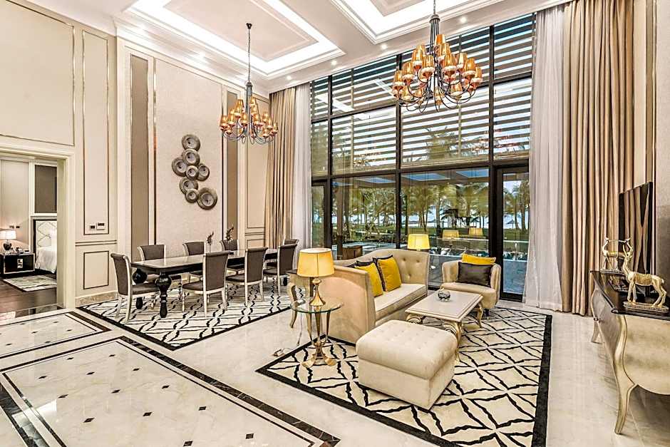 Paikan päällä sijaitseva Avenue-ravintola tarjoaa vietnamilaisia ja kansainvälisiä makuja, mikä täydentää aurinkoista rantaelämystä. Tunnelma vaihtelee hetken mukaan: perheystävällinen, moderni tai romanttinen, joten paikka sopii niin rentoihin aamuihin kuin kynttilänvalossa nautittaviin illallisiin. Huonepalvelu tarjoaa lisämukavuutta myöhäisiin mielitekoihin tai yksityiseen ateriaan meren äärellä. Päivän auringossa vieton jälkeen kaksi allasta — ulkoallas, joka on käytössä ympäri vuoden, ja erillinen lastenallas — yhdistyvät suoraan rannan tuntumaan, mikä tekee rentoutumisesta paratiisissa helppoa.