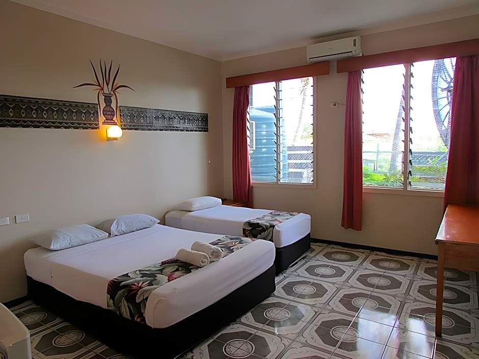 Set along Newtown Road in Nadi, this 2-star retreat offers a playful mix of stays. For solo travelers or couples, compact options like the Standard Room (44 sqft) or the Deluxe Double Room (65 sqft) keep things simple and comfortable. Families can choose the Family room (54 sqft) or the Suite, Poolside (162 sqft) for a bit more space, while larger groups can spread out in villas such as Villa Garden View or Villa Mountain View (both about 323 sqft) and the Villa Connecting, which can host up to 20 adults and 13 children.