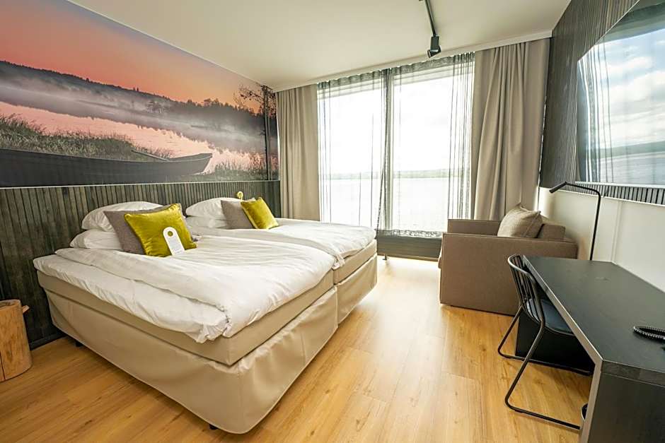Two on-site dining options make culinary exploration easy: Buolu Cafe & Ristorante offers a family-friendly, modern vibe with Italian fare and pizza, while Ravintola Bomba serves Local cuisine. The property also features a beach front and lake views, providing a serene backdrop for strolls and sunset moments.