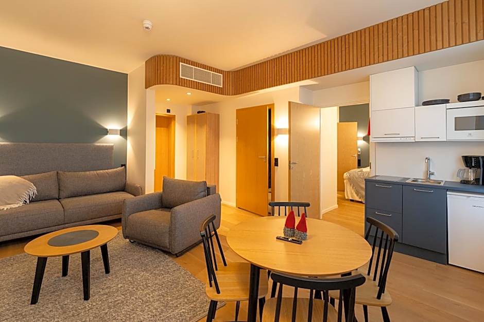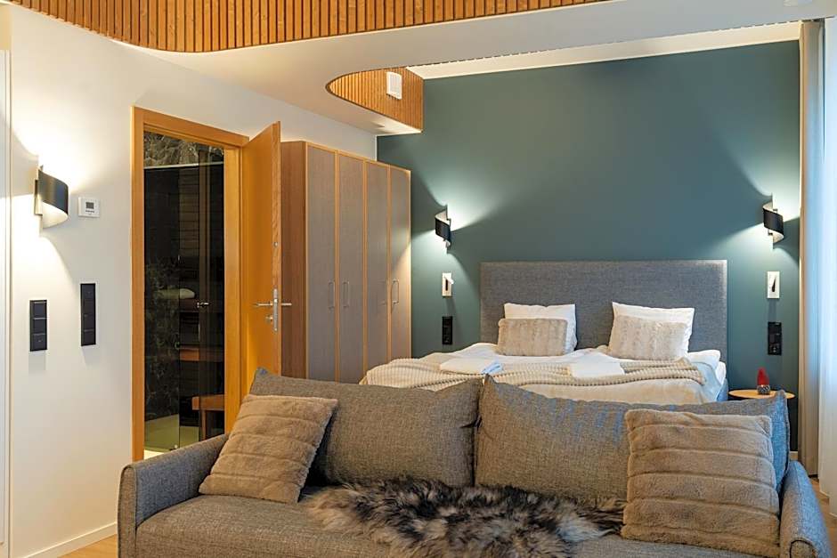 The sauna is a top feature of this suite. The air-conditioned suite has 1 bedroom and 1 bathroom with a walk-in shower and a hairdryer. Guests can make meals in the kitchen that features a stovetop, a refrigerator, kitchenware and a microwave. The suite features a flat-screen TV, soundproof walls, a tea and coffee maker, a seating area as well as city views. The unit has 1 bed.