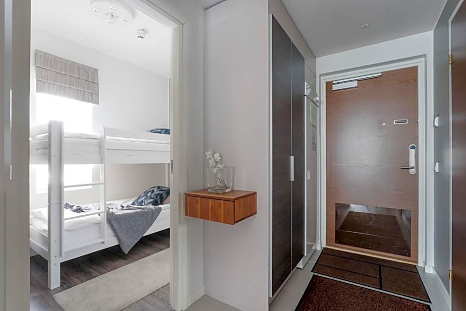 Vuokatti Suites Apartments offers a variety of apartment rooms. The rooms range in size from 527 sqft to 646 sqft and can accommodate between 4 to 6 adults, with the addition of 0 to 2 children. All rooms are non-smoking. The rooms have different bed configurations, including twin beds, bunk beds, queen-size beds, and sofa beds.