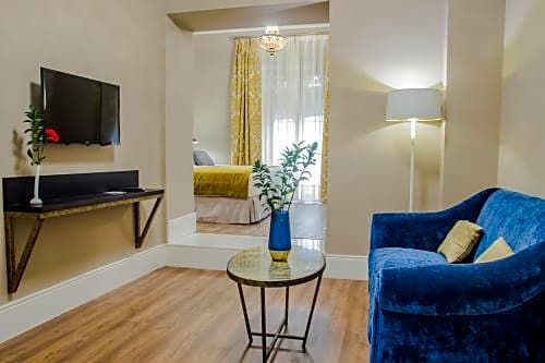 Les hébergements proposent une variété d'options élégantes, notamment la Chambre Double Deluxe avec Terrasse et la Suite Junior Premium avec Patio, ainsi que plusieurs autres suites et chambres doubles. Chaque chambre est équipée de la climatisation, d'une isolation phonique et d'aménagements tels que balcon ou terrasse privative ; nombreuses disposent aussi d'une entrée privée et d'une terrasse offrant une vue sur les monuments. Les services pratiques abondent : réception 24h/24, accès par ascenseur et chambres non-fumeurs, avec des prestations optionnelles payantes comme baignoires spa/jacuzzis, navette aéroport, services de navette et concerts en direct.