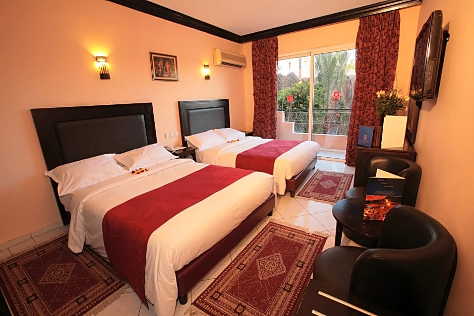 À l’extérieur, une piscine en plein air (gratuite) attend les clients, réservée aux adultes, idéale pour une baignade revigorante. La terrasse baignée de soleil, le jardin et les balcons offrent de nombreux espaces pour se détendre, et un ascenseur facilite les déplacements dans l’établissement. Un bureau des excursions aide à organiser les visites de Marrakech, tandis que le Wi‑Fi gratuit reste pratique pour partager ses moments de voyage et rester connecté.