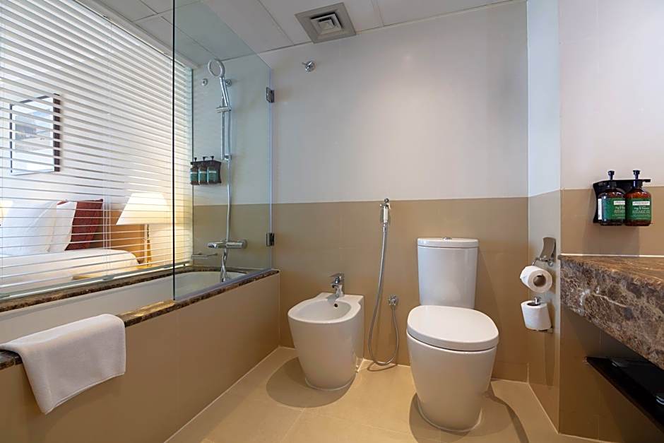 Les options de restauration s'étendent sur cinq établissements : Come Prima (italien, romantique moderne), Shiraz (moyen-oriental), The Restaurant (international), The Duke's (britannique) et The Edge (international). De la musique live gratuite assure une bande-son nocturne, et une réception ouverte 24h/24 aide pour les arrivées et les questions. Une navette gratuite propose des transferts pratiques vers la ville, tandis que le Wi-Fi gratuit et un parking privé gratuit simplifient l'organisation.