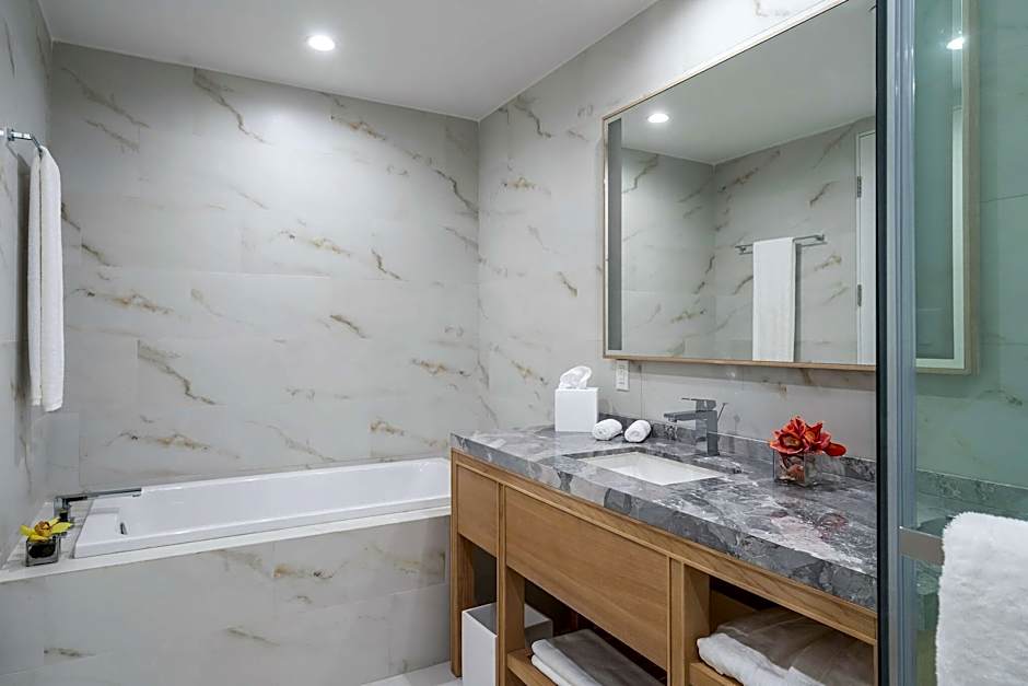 Plongez dans la piscine extérieure rafraîchissante ou promenez-vous le long de votre propre espace de plage privé, où parasols et transats vous invitent à profiter du soleil. Si vous souhaitez vous faire choyer, le complexe propose des forfaits spa et bien-être indulgents qui promettent une escapade de pur bonheur. Ajoutez à cela une variété d'options de restauration au restaurant de l'hôtel et un bar qui sert les meilleurs cocktails tropicaux, et il vous sera difficile de quitter le confort de votre terrasse ensoleillée ou de votre balcon.