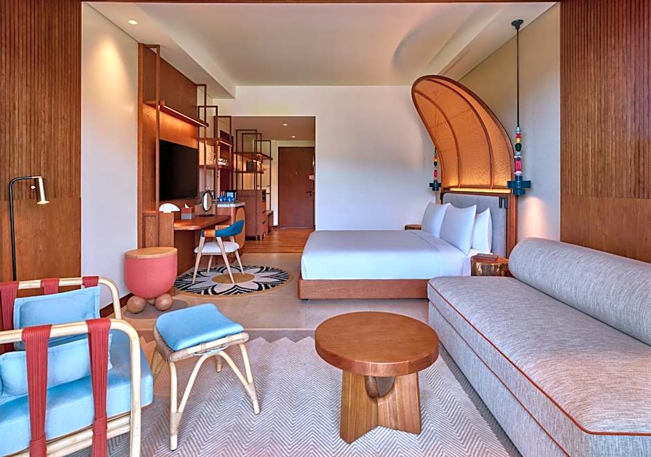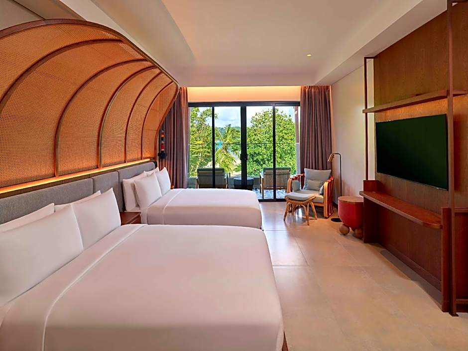 L'hébergement va de l'intime au spacieux. La Junior Suite offre 764 pieds carrés d'espace avec un lit king-size pour deux adultes et un enfant, tandis que la Chambre Deluxe Vue Jardin accueille jusqu'à quatre adultes et trois enfants avec un lit king-size. Pour les groupes plus nombreux, la configuration Family Connecting peut héberger jusqu'à huit adultes et quatre enfants, comprenant un lit king-size et deux lits queen-size. Les options pour les groupes et l'intimité comprennent un Appartement 1 chambre avec piscine privée de 1 367 pieds carrés (accueille deux adultes et un enfant), ainsi que la généreuse Suite Vue Océan pouvant loger jusqu'à huit adultes et cinq enfants.