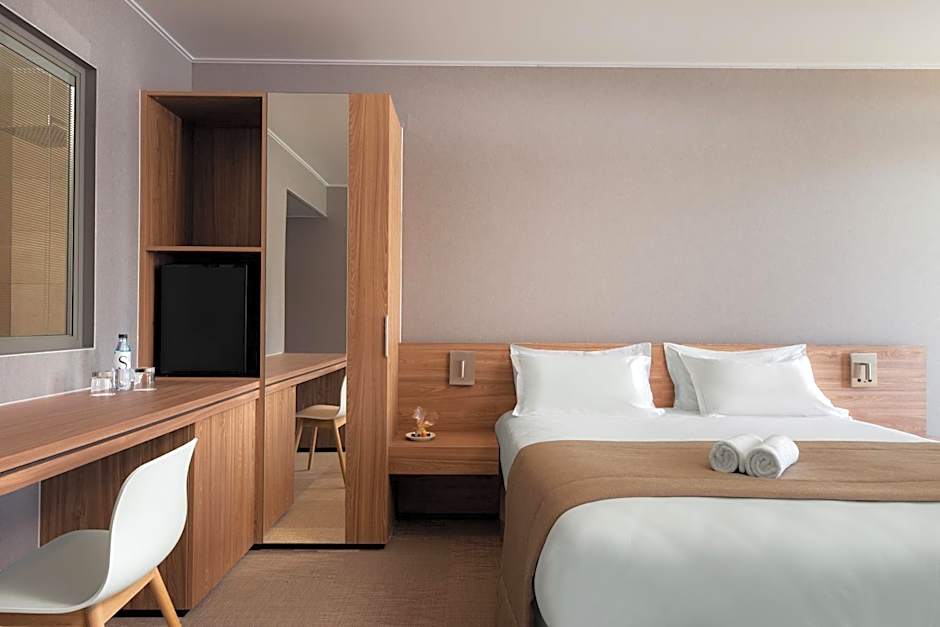 The spacious twin/double room features air conditioning, soundproof walls, a terrace with sea views as well as a private bathroom boasting a walk-in shower.