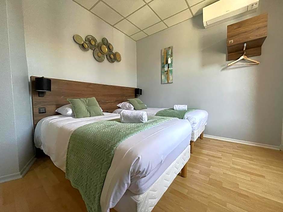 The Hotel Le Rochegude offers a variety of room options including Twin Rooms, Triple Rooms, Family Rooms, and Double Rooms. Smoking is not allowed in any of the rooms. The Twin Rooms and Double Rooms accommodate 2 adults and 1 child, while the Triple Rooms and Family Rooms accommodate more guests with the ability to accommodate 3 adults and additional children. The room sizes range from 151 sqft to 183 sqft.
