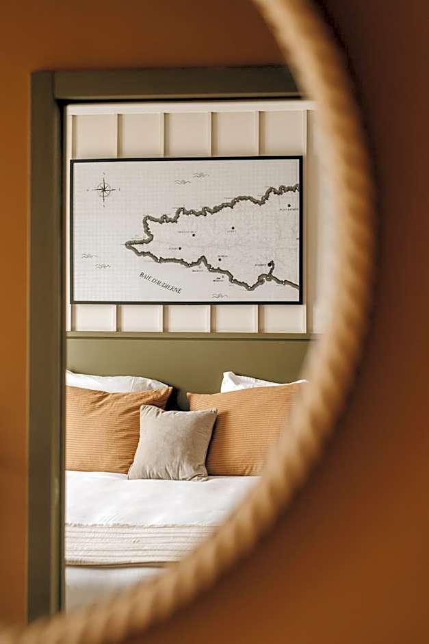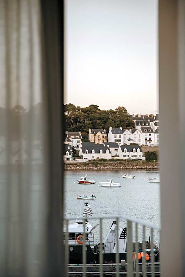 The room features a balcony overlooking the harbor of Audierne.