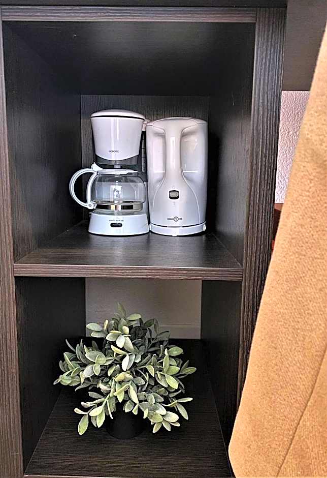 This apartment features air conditioning. It has a kitchenette, microwave and kitchenware.