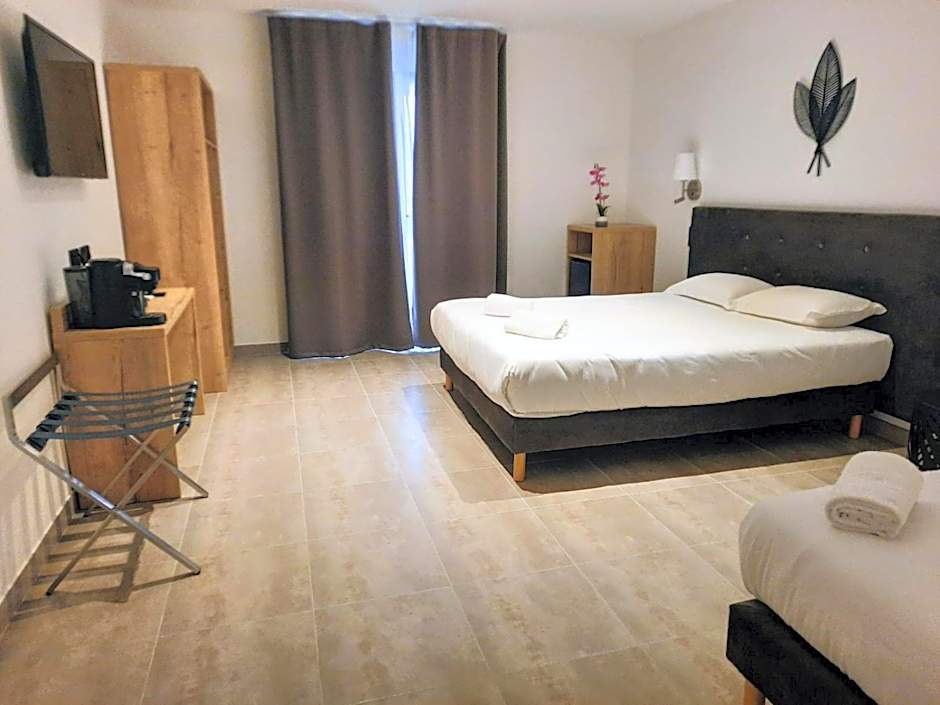 Hôtel Casa Mea offers a variety of room types including Standard Double Room with a king-size bed for 2 adults and 1 child, Standard Triple Room with a twin bed and a king-size bed for 3 adults and 2 children, Large Double Room with a king-size bed for 2 adults, Family Room with Shower with two twin beds and a king-size bed for 4 adults and 3 children, Triple Room - Disability Access with a twin bed and a queen-size bed for 3 adults and 1 child, and Superior Double or Twin Room with a king-size bed and two twin beds for 2 adults and 1 child. None of the rooms allow smoking.