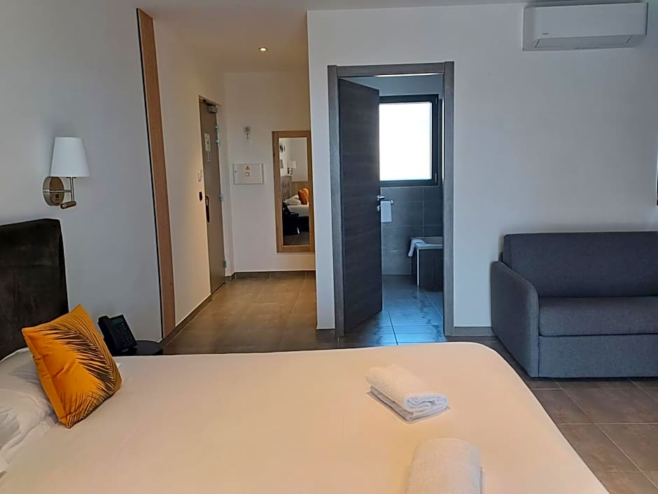 The twin/double room features air conditioning, soundproof walls, a balcony with sea views as well as a private bathroom boasting a walk-in shower.