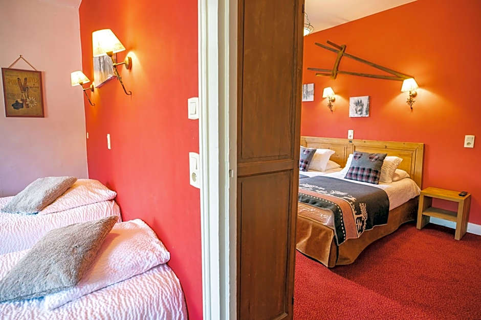 This communicating suite with balcony and mountain views features a private bathroom with free toiletries, hairdryer and bathtub. It offers a large double bed and 2 twin beds. Bathroom entirely renovated.