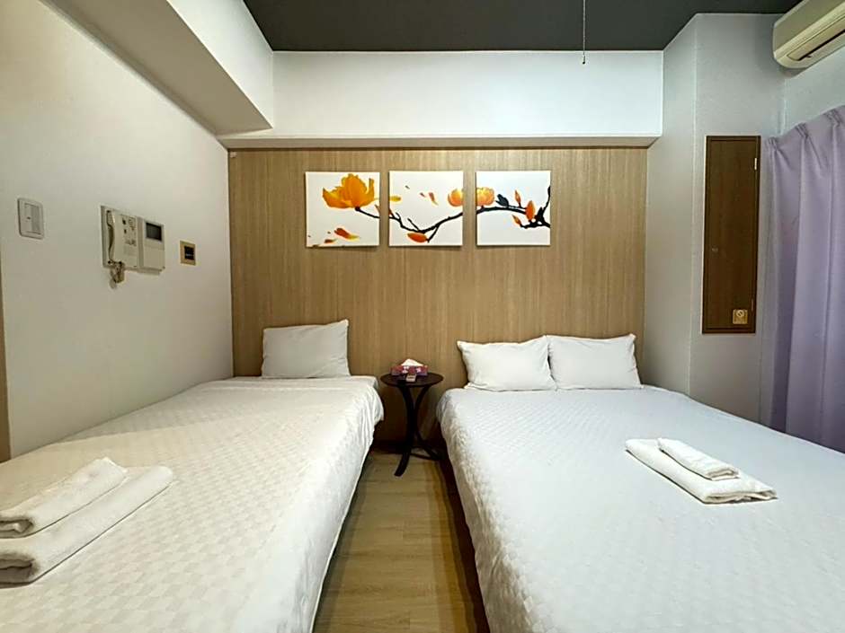 Inside, a family room accommodates up to four adults, with two twin beds, one double bed, and one queen-size bed. Smoking is not allowed.