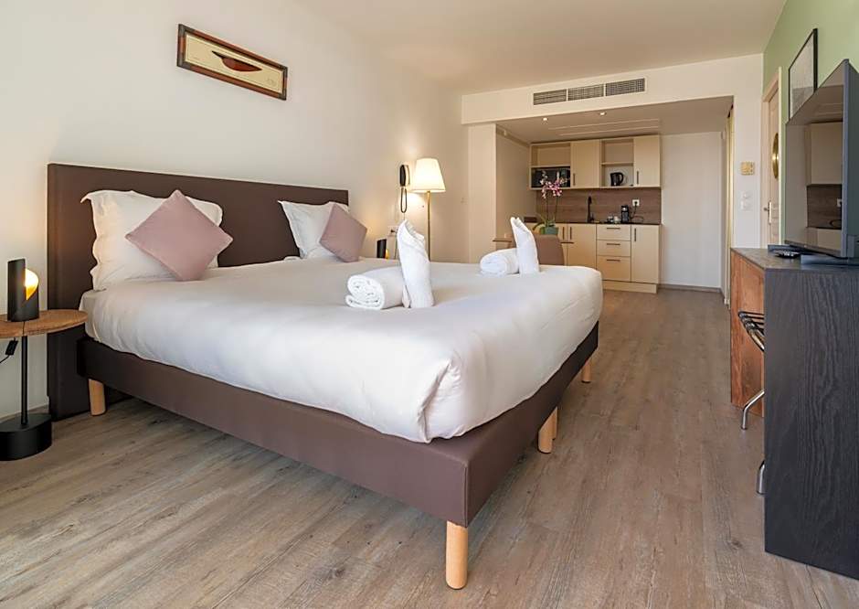 Free Wifi and air conditioning help stay comfortable, while a bar, sun deck, and terrace invite relaxed moments by the sea. A private entrance and an elevator add practicality. Kitchenware and a kitchenette are handy for light meals, and a bathtub with free toiletries adds a touch of convenience. 24-hour front desk service and non-smoking rooms round out the stay.