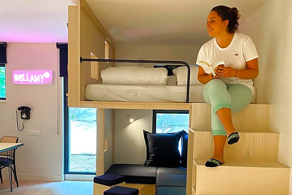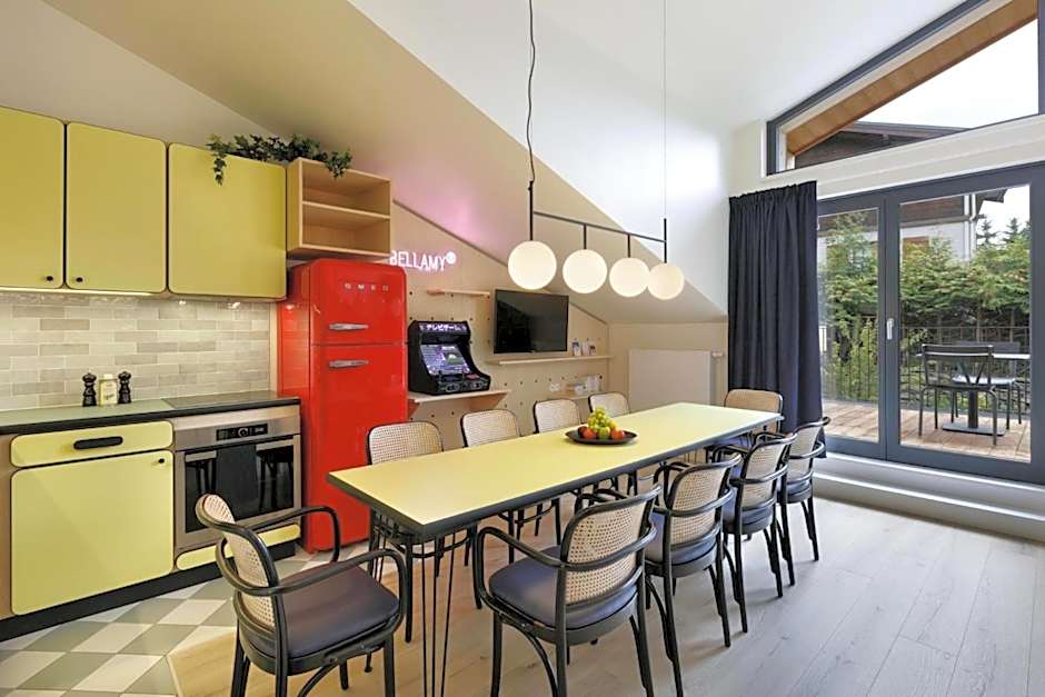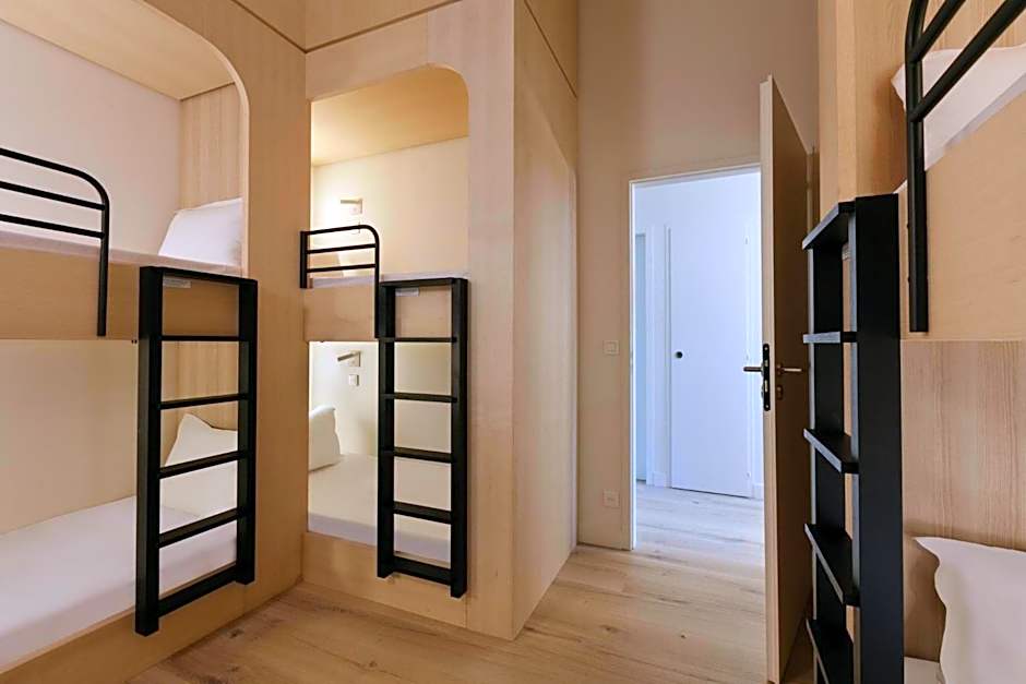The Appart'hôtel Bellamy Chamonix offers a variety of apartment-style rooms including one-bedroom apartments and a three-bedroom apartment with terrace. These rooms can accommodate between 3 to 10 adults and feature queen size beds, sofa beds, and bunk beds. Smoking is not allowed in any of the rooms. Additionally, the hotel also has a studio room known as the Mezzanine Studio which can accommodate 2 adults and features a queen size bed.