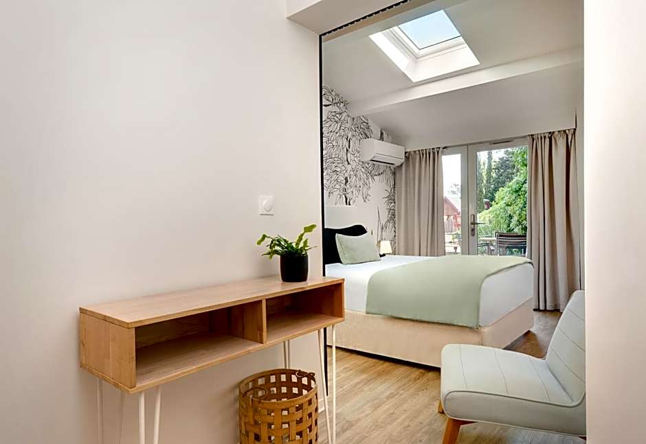 This air-conditioned room with a view of the garden features a private terrace or balcony, a flat-screen TV, a mini-bar and free Wi-Fi access.