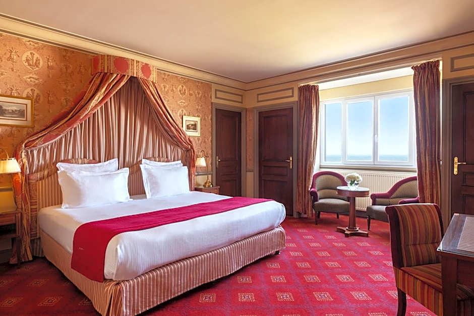 The hotel has one restaurant on site called Côté Royal. This restaurant offers a family-friendly, traditional, and romantic atmosphere. It serves French cuisine.