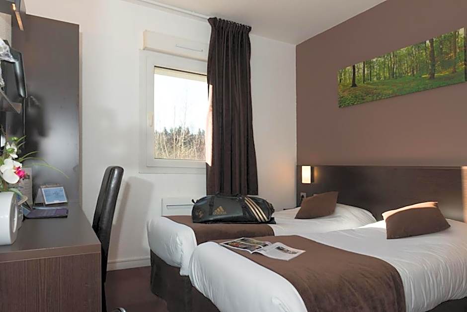 Kyriad Limoges Sud - Feytiat offers a variety of rooms including those with 2 twin beds, standard rooms with 2 beds or 1 double bed. Smoking is not allowed in any of the rooms. The rooms accommodate 2 adults and 1 child, providing flexibility for different guest configurations.