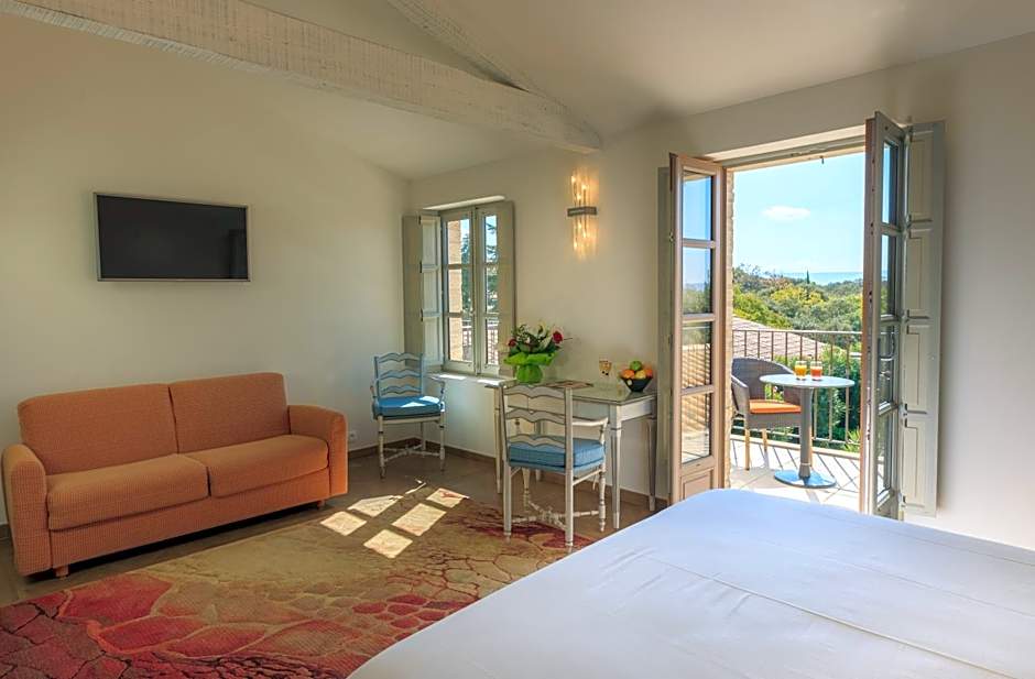 Le Jas de Gordes offers a variety of rooms including Double Rooms with Garden Views, Junior Suites, Double or Twin Rooms with Terraces, Prestige Double Rooms with Sofas, and Superior Double Rooms with Balconies. All rooms have a no smoking policy and accommodate either 2 adults or 2 adults and 1 to 2 children. Bed sizes range from Queen to King, with additional Twin beds and Sofa beds available in some rooms. Room sizes vary from 172 sqft to 431 sqft.