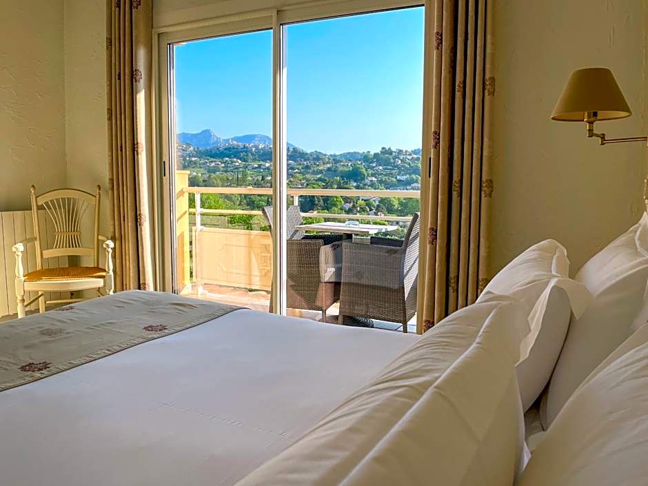 Room with king size bed or twin beds with view to the medieval city of St Paul de Vence.