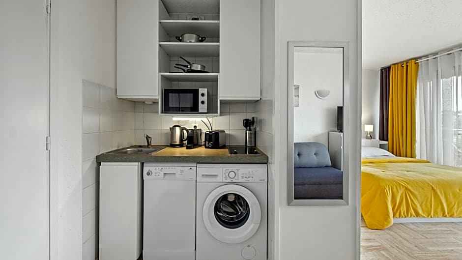 Nestled just from the charming city center of Mandelieu-la-Napoule, the offers a delightful retreat in the heart of France. Starting at just per night, you’ll enjoy a comfortable stay in a spacious apart-hotel featuring a fully equipped kitchen, breathtaking ocean and mountain views, and a private balcony where you can sip your morning coffee while soaking in the scenery. Whether you're relaxing in the outdoor swimming pool, exploring nearby golf courses, or taking advantage of the free Wi-Fi, this hotel combines convenience and luxury perfectly.