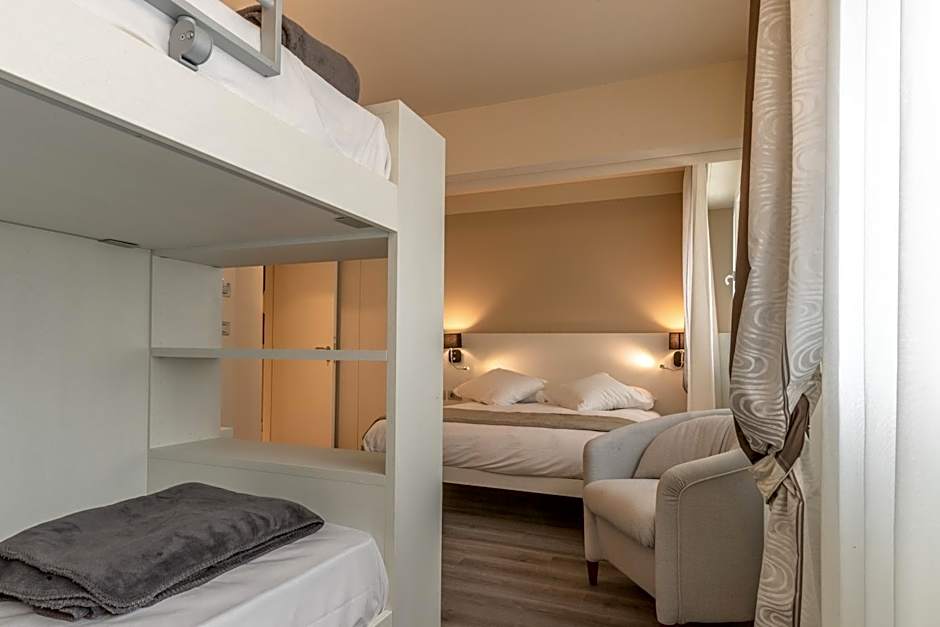 The family room includes a private bathroom fitted with a walk-in shower, a bidet and a hairdryer. The air-conditioned family room offers a flat-screen TV with cable channels, soundproof walls, a mini-bar, a tea and coffee maker as well as an inner courtyard view. The unit has 3 beds.