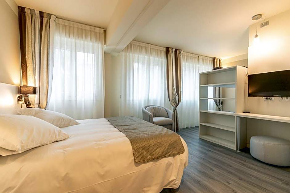 The double room includes a private bathroom equipped with a walk-in shower, a bidet and a hairdryer. The air-conditioned double room provides a flat-screen TV with cable channels, soundproof walls, a tea and coffee maker, a wardrobe as well as an inner courtyard view. The unit offers 2 beds.