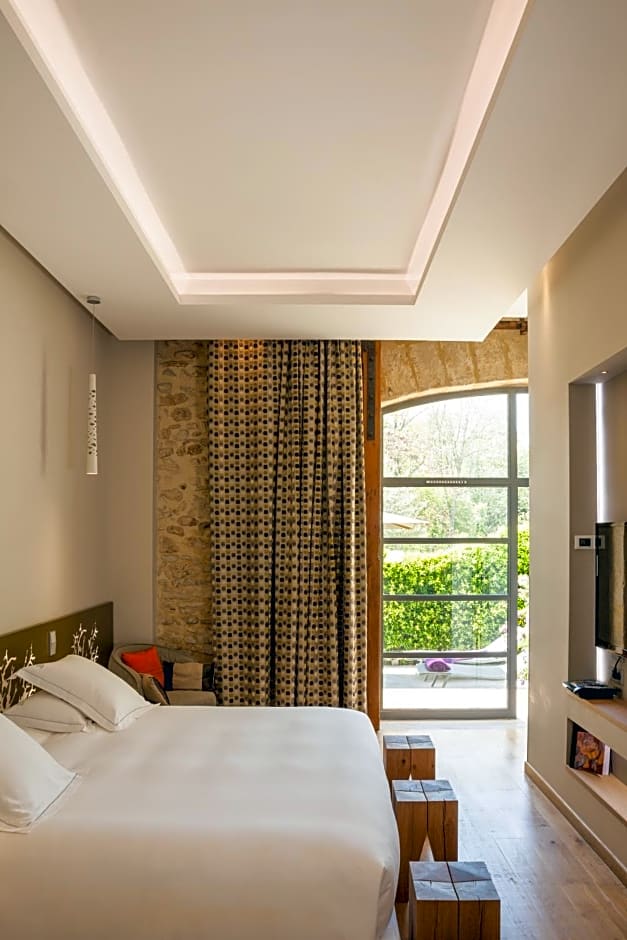 Some suites feature a private terrace with a view of the park or the vineyard.