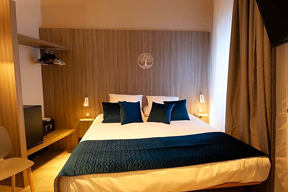 The Hôtel Nancy Gare-Congrés offers a Deluxe Twin Room with 2 twin beds, sized at 205 sqft. Smoking is not allowed in this room, and it accommodates 2 adults and 1 child. Additionally, the hotel provides a Standard Double Room with a double bed, measuring 161 sqft. Like the Deluxe Twin Room, smoking is not allowed, and it accommodates 2 adults and 1 child.