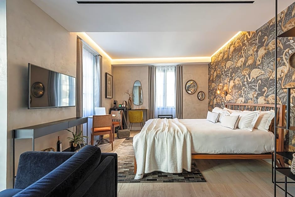 Deluxe Double Rooms feature elegant, luxurious decor with contemporary details. The rooms offer a feeling of timeless comfort created for special moments and a peaceful stay. They have a small balcony and a view of Place Magenta or Rue Paradis.