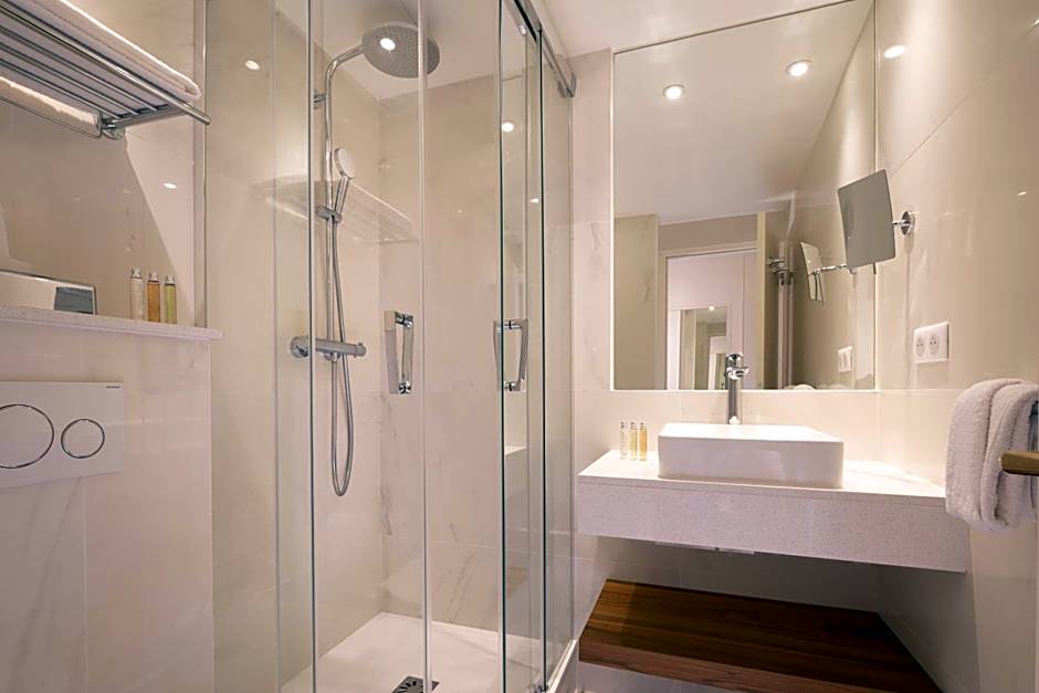 No , cada canto transborda charme parisiense! Desde a decoração cuidadosamente selecionada até o suave brilho dos lustres, a atmosfera convida você a relaxar com estilo. Imagine-se passeando pelo hotel, fazendo uma pausa no sereno pátio-jardim, onde os ruídos da cidade desaparecem. Permaneça lendo um livro ou simplesmente saboreie seu café au lait e absorva a beleza cênica que o cerca. O hotel irradia uma vibração acolhedora, perfeita para viajantes que procuram embarcar em aventuras relaxantes ou escapadas românticas.