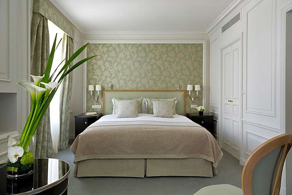 Hôtel San Régis offers a variety of room types, including Junior Suites, Deluxe Suites, Classic Rooms, and Family Suites. Accommodations range from Double Rooms to Family Suites, with bed options such as Queen and Twin beds. Most rooms can accommodate 2 adults and 1 child, with smoking not allowed in any of the rooms. Room sizes vary from 248 sqft for the Superior Double Room to 915 sqft for the Family Suite.