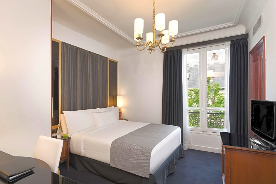 Après une journée à explorer la Ville Lumière, cette élégante base quatre étoiles allie le charme parisien au confort moderne. Le restaurant sur place (Restaurant n°1) propose une cuisine française, et un bar ainsi qu'une terrasse offrent des espaces détendus pour un dernier verre ou une collation au coucher du soleil.