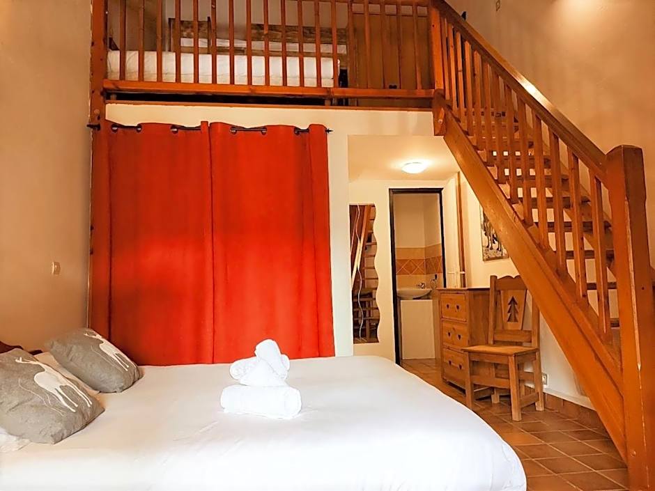 This north-facing room has a flat-screen TV and a private bathroom. It has a direct access to the ski elevator during winter season.